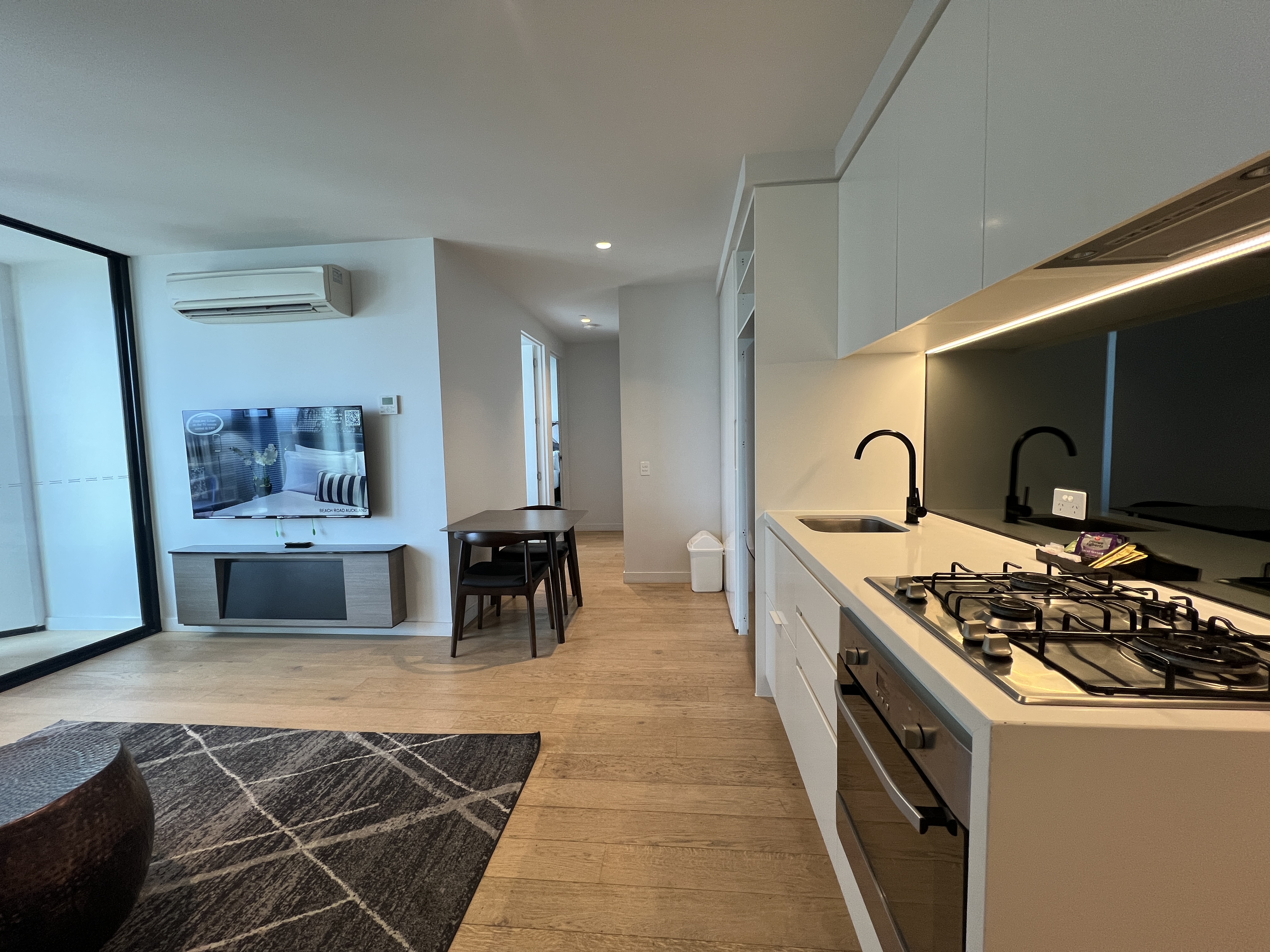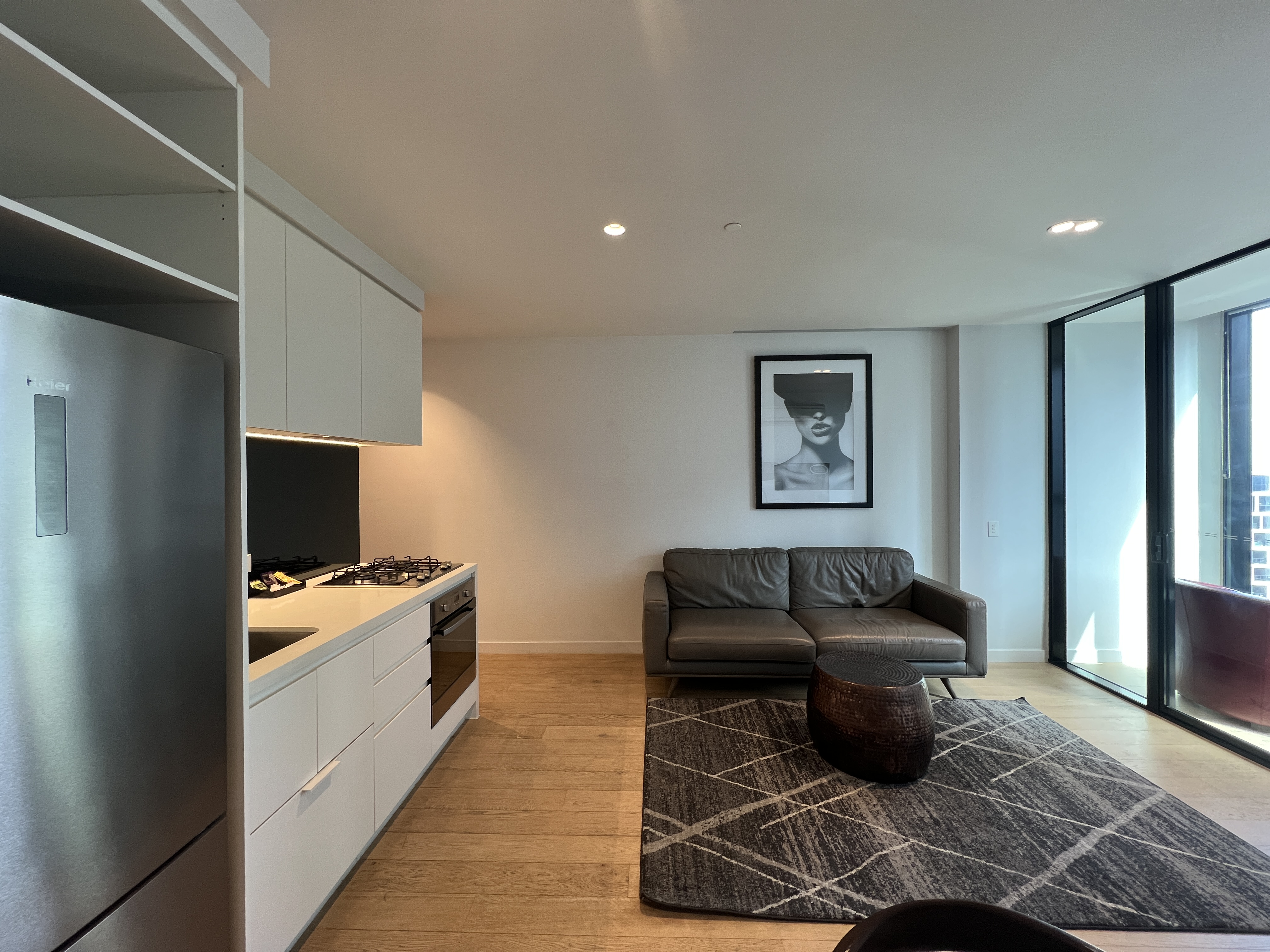 Bathed in abundant northern sunlight, the apartment has been thoughtfully designed to maximise natural light and urban views. The spacious open-plan living and dining area is enhanced by premium timber flooring and expansive floor-to-ceiling windows, creating a bright and elegant atmosphere throughout.