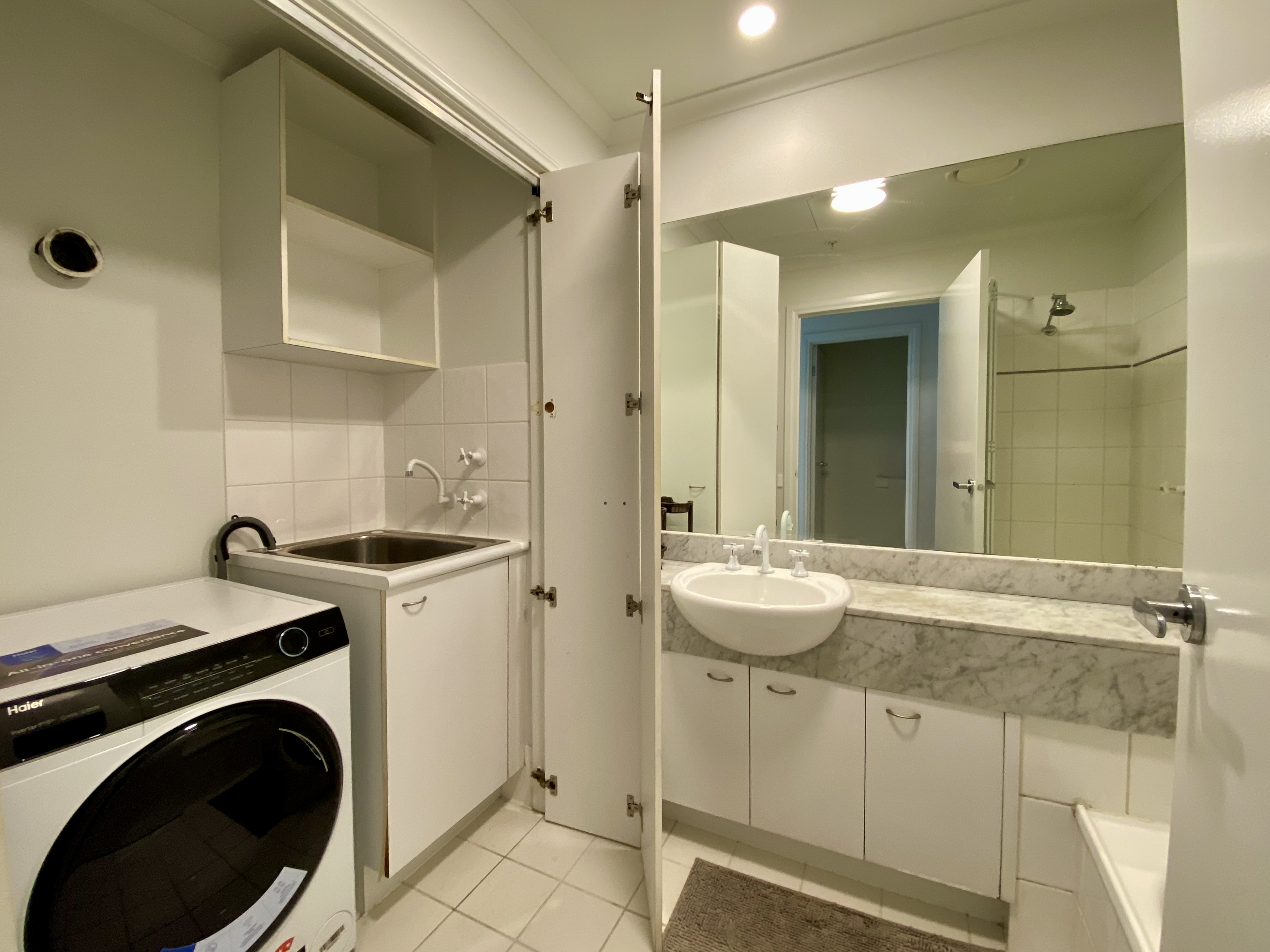 • Modern bathroom with European Laundry